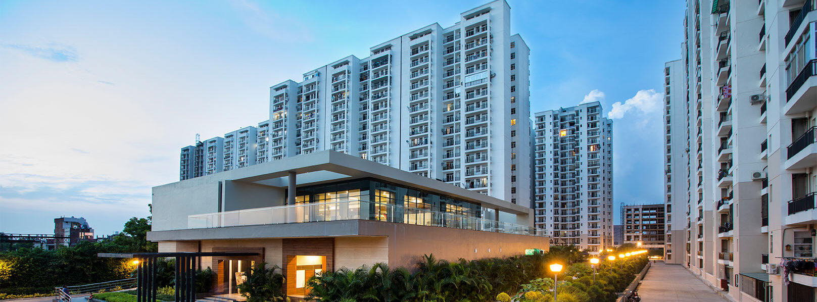The project is planned over a land area of 5.98 acres aprox. and has a proposed built-up area of 1,026,500 sqft. aprox. The complex includes 7 residential blocks out of which 3 blocks have 26-floor levels, 2 blocks have 25-floor levels, 2 blocks have 18-floor levels and 1 block has 19-floor levels and every flat will be in single lane and both side open with natural green view and hjill views . The commercial block has 3-floor levels and a basement. The building society has incorporated the system of rainwater harvesting which helps save water and maintain the groundwater table.